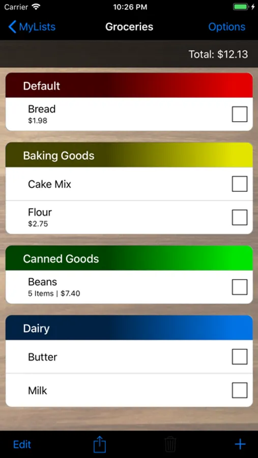 * Your lists, categories, and items are backed up automatically in the cloud and synced between devices.