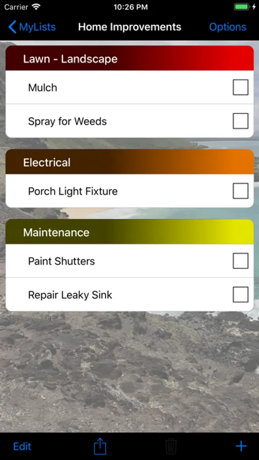 MyList brings an easy and fun way to organize any type of list you have - for example Grocery, Shopping lists, To-Do lists, Bucket Lists, Movies to watch, Songs to download, Home Improvements, or whatever list you need!