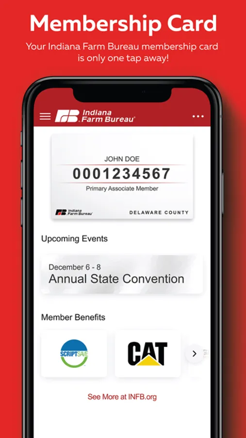 The Indiana Farm Bureau mobile app provides the convenience of having your membership card, event information and member benefits all in one easy-to-use application.