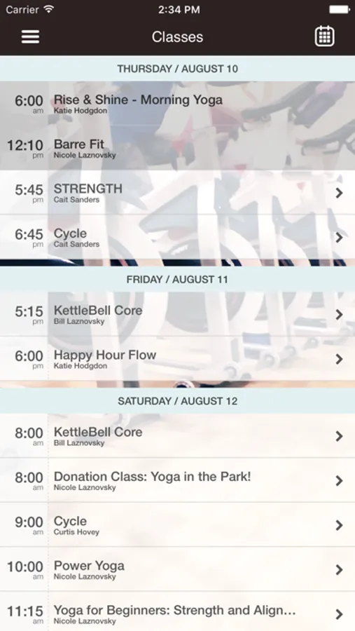 Now you can check out our latest schedule in real-time and sign up for classes on the go. Login to see your schedule, membership information, visit and payments history, cancel a reservation, and even purchase your favorite services.