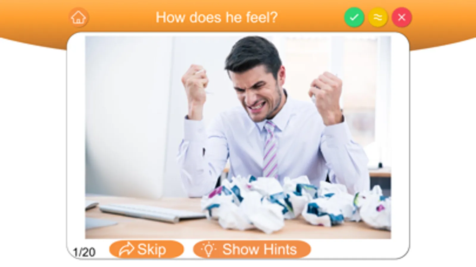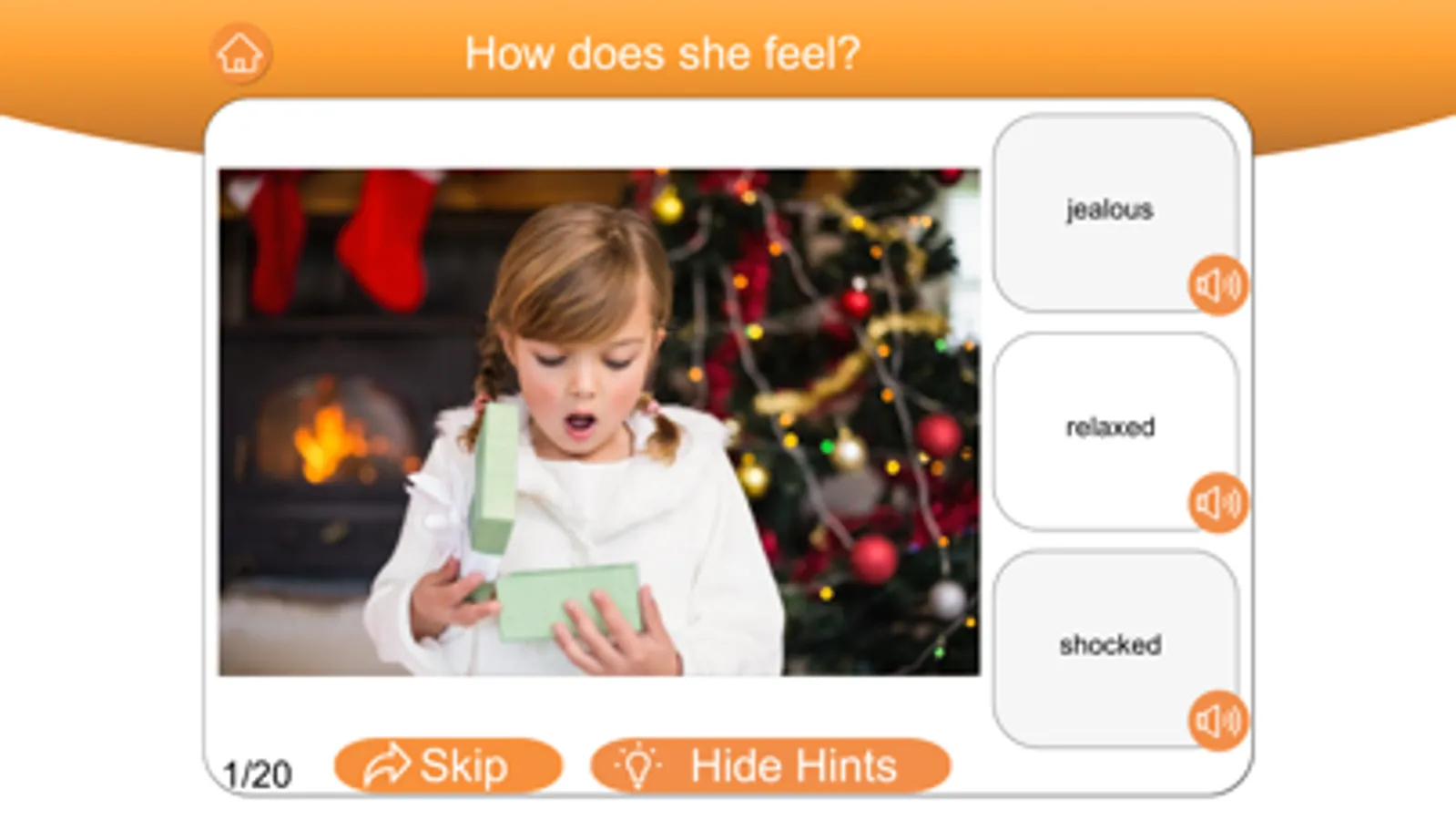 ASK THE SECOND QUESTION. The second question in each social inferencing activity is “How can you tell?”. Encourage the user to find all the clues in the picture and provide verbal explanations when needed.
