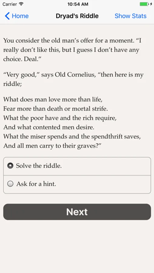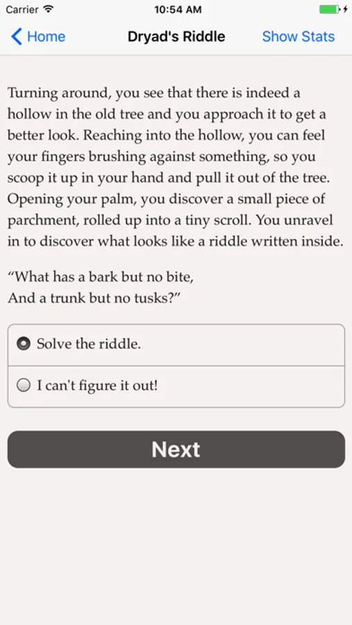 "The Dryad's Riddle" is a 70,000 word interactive fantasy novel by Avery Moore, where your choices control the story. It's entirely text-based—without graphics or sound effects—and fueled by the vast, unstoppable power of your imagination.