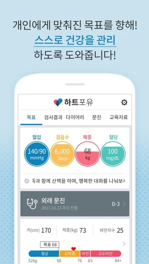 개인에게 맞춰진 목표를 향해, 스스로 건강을 관리하도록 도와줍니다.