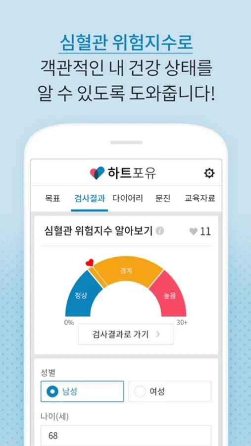 심혈관 위험지수로 객관적인 내 건강상태를 알 수 있도록 도와줍니다.