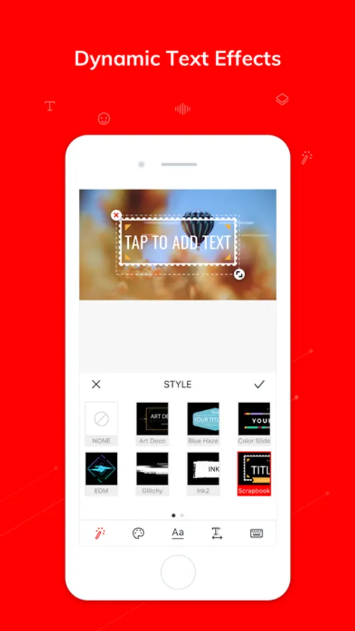 • Text: dynamic text effects. You can edit the color, size, font, and even animation of your text