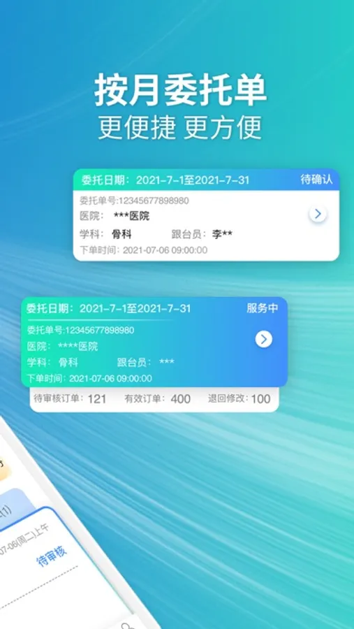 手术跟台专业 信息管理软件,器械经营企业人员可以实时发布手术跟台服务订单,查看跟台技术服务人员资质,追踪跟台服务订单详情,查询和统计历史服务订单数据。