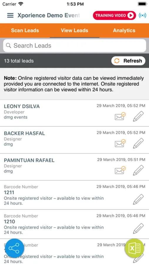 A lead retrieval system for exhibitors to capture and export leads, add notes, send emails and track performance. This App can be used both on and offline. Free to download for exhibitors with the logins provided by dmg events.