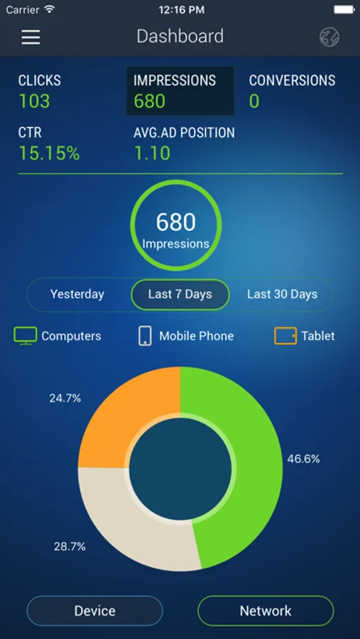 View all your normal AdWords data—such as daily, weekly and monthly insights, impressions and clicks—in an easy to read format.