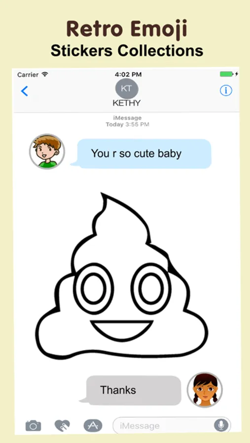 Download Retro Stickers and send these stickers on their own or peel and place them on any message bubble in your conversation.