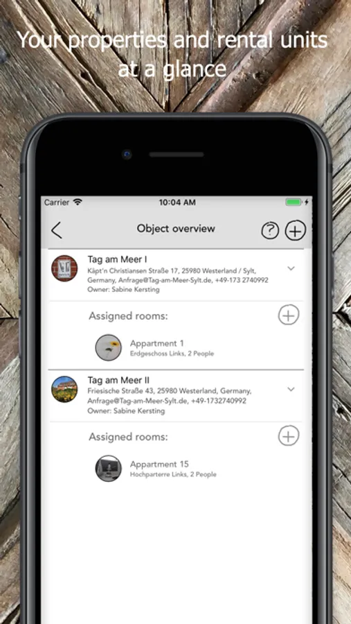 • Set up and administration of rental properties and apartments (Objects & Rooms)