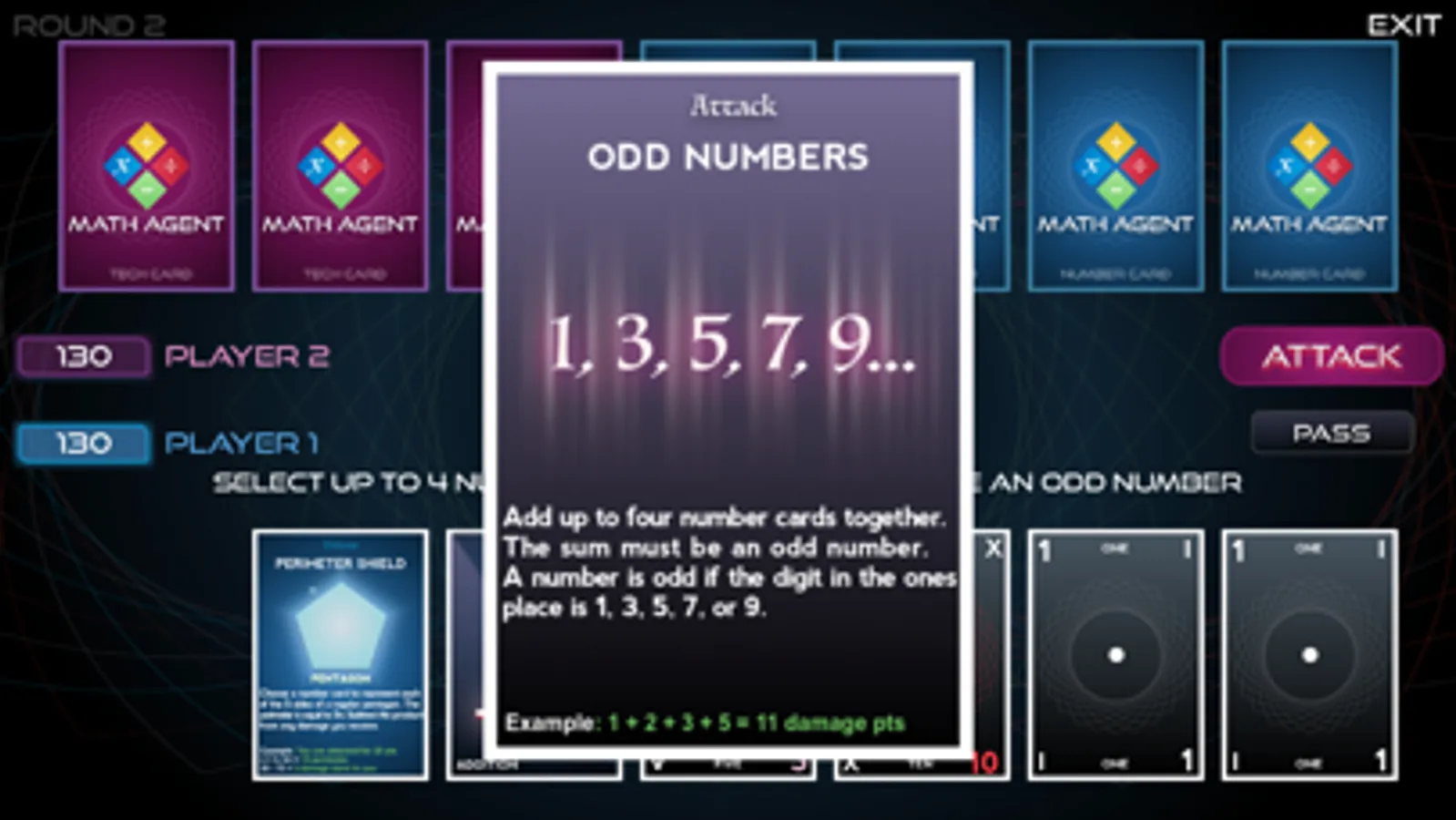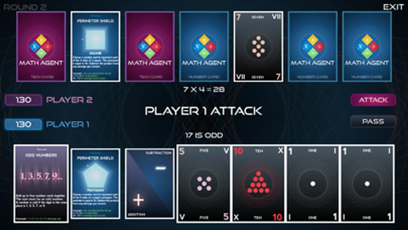 Improve mathematical fluency with this dynamic, socially engaging game. Challenge family and friends or the AI opponent to interactive duels to sharpen your skills. MATH AGENT combines academic standards-based mathematical concepts and operations with easy to learn strategic game play to make math learning F-U-N!