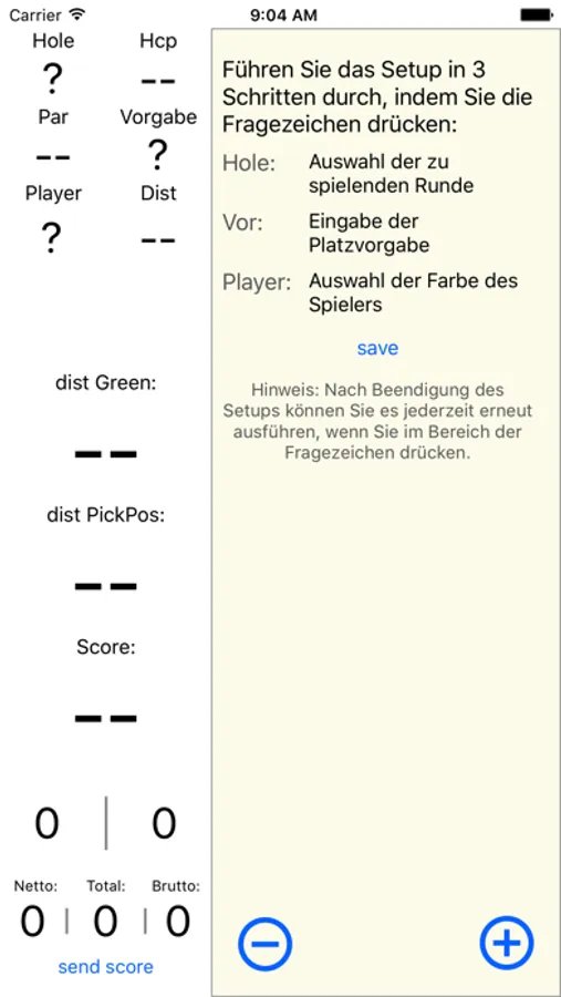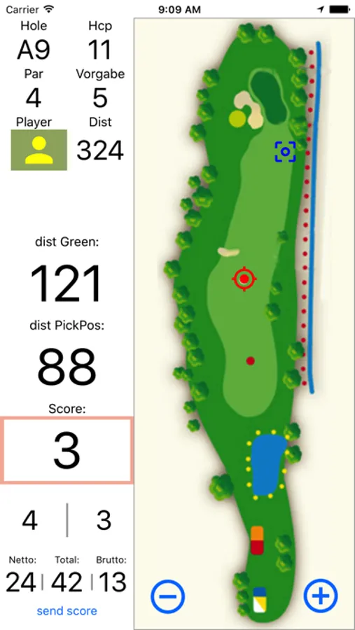 Die Anzahl der Schläge wird durch einfaches Tippen erfasst. Nach Beendigung der Spielbahn werden automatisch die Punkte