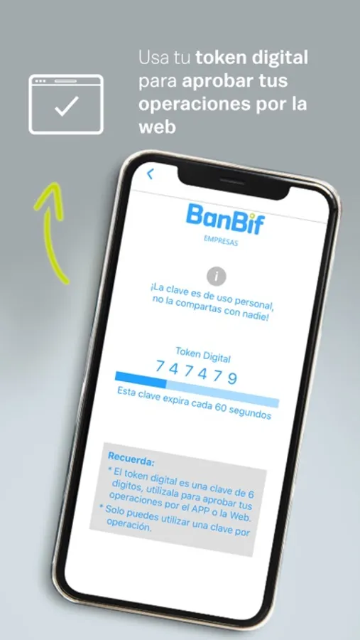- Utilizar tu token digital para aprobar las operaciones de manera inmediata en tu celular o utilizar esa clave para aprobar desde tu computadora. ¡Dile adiós al token físico!