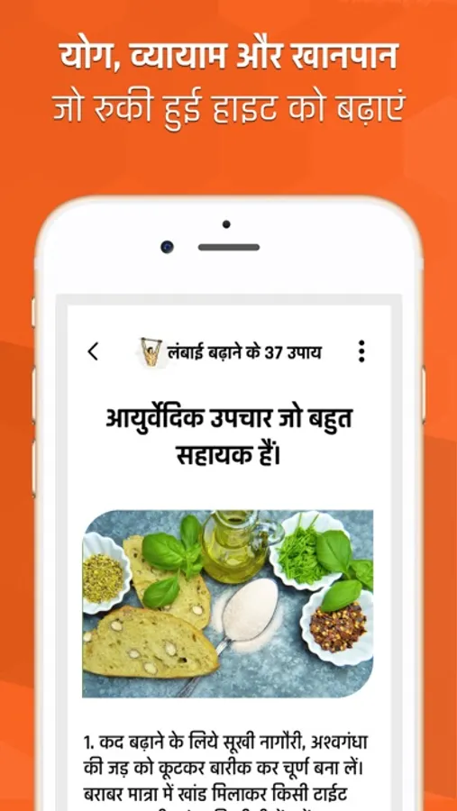 क्या आप अपनी हाइट बढ़ाने के सभी उपलब्ध तरीकों को आजमा चुके हैं और फिर भी आपकी हाइट में वांछित बढ़ोतरी नहीं हो रही है? तो इस एप में हम कुछ नेचुरल टिप्स दे रहे हैं जिनको आप कुछ समय तक लगातार उपयोग में लेकर अपनी हाइट में इजाफा कर सकते हैं।