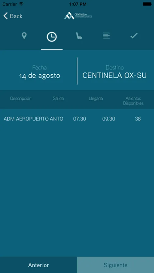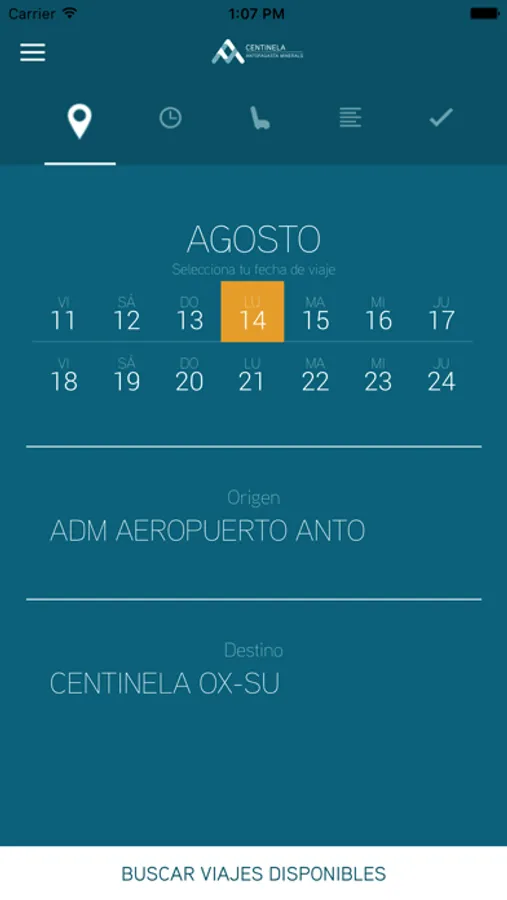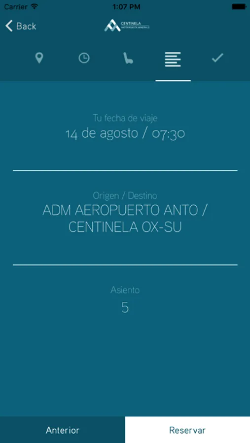Aplicación que permite la reserva de asientos para el transporte en los diversos servicios disponibles para la Minera Centinela.
