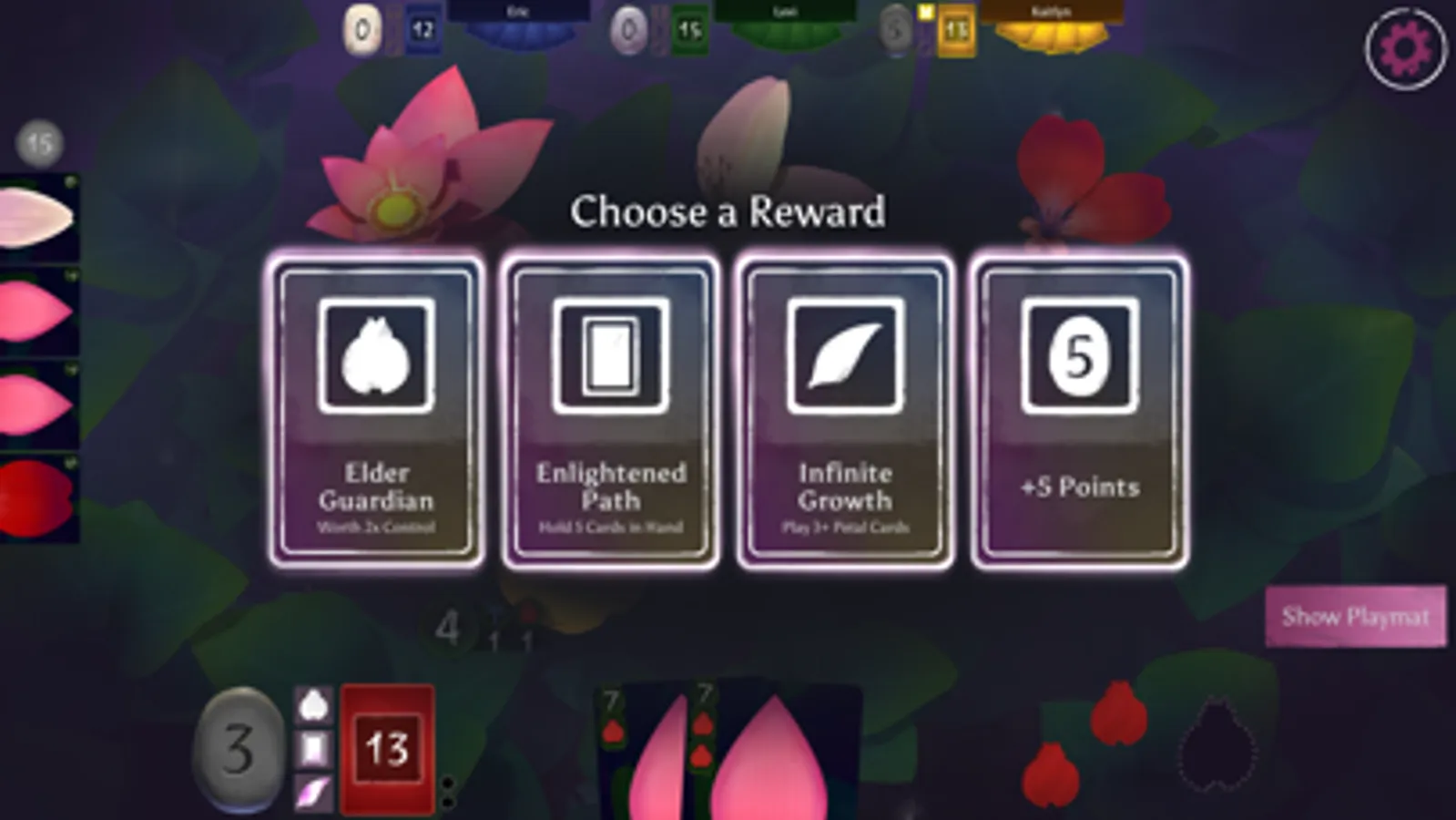 In Lotus, players take turns adding petals and utilizing guardians to control and nurture these mystical flowers to maturity. Collect special abilities as you grow to aid you on your quest, and gain wisdom points for each completed bloom. At the end of the game the player with the most wisdom points will emerge from the garden that much closer to enlightenment!