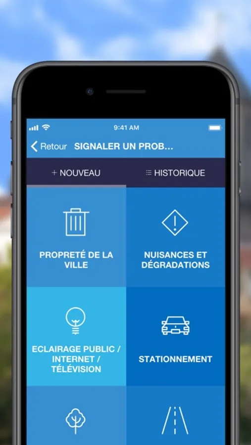 • Signalez instantanément les incidents que vous pouvez rencontrer : chaussée endommagée, graffiti, éclairage public défaillant, etc.