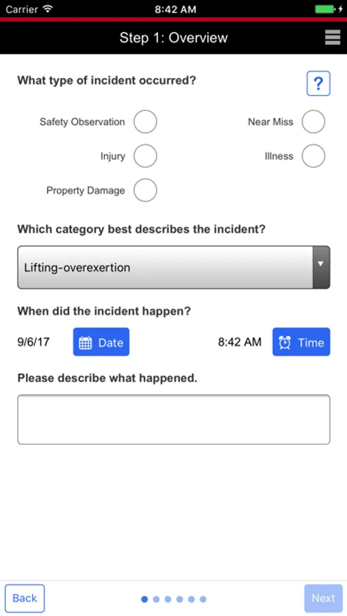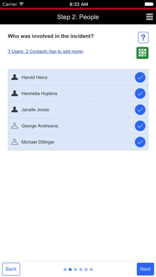 After you login with your Convergence username and password, you can follow the wizard to report incidents from the field. You can also scan barcodes and/or QR codes to easily find users.