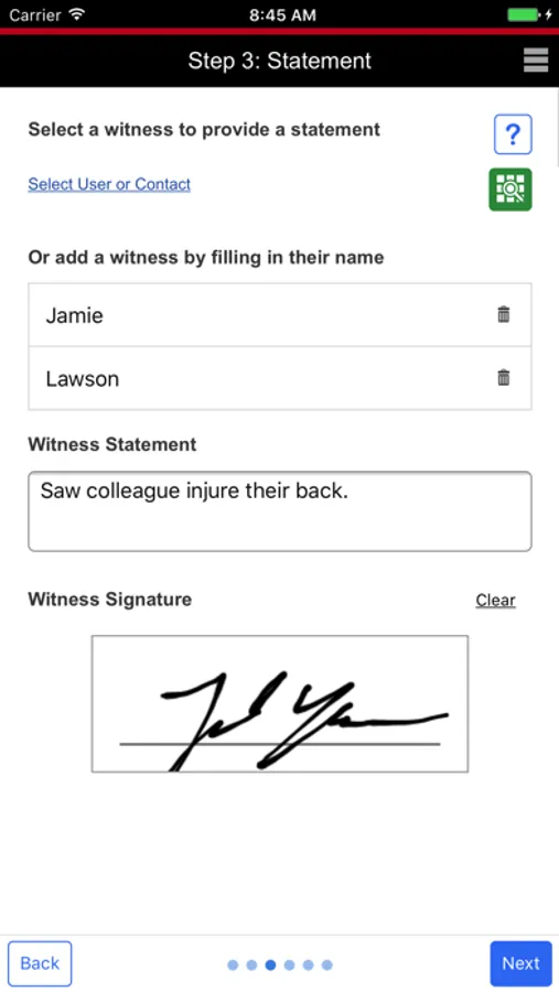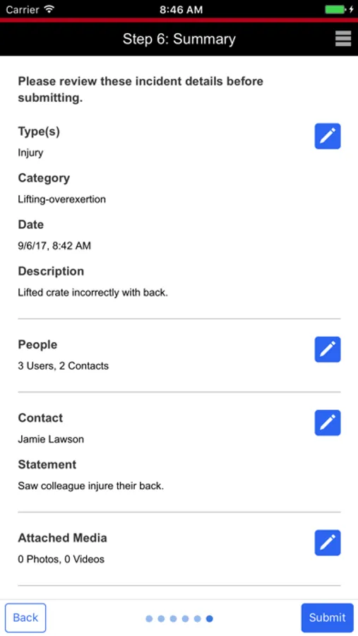 Report incidents by filling out details, choosing users and contacts, completing a witness report, recording images and videos, selecting a location, and sending the completed report right from your Apple device.