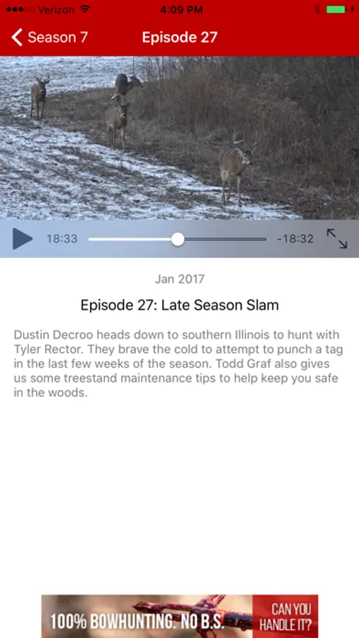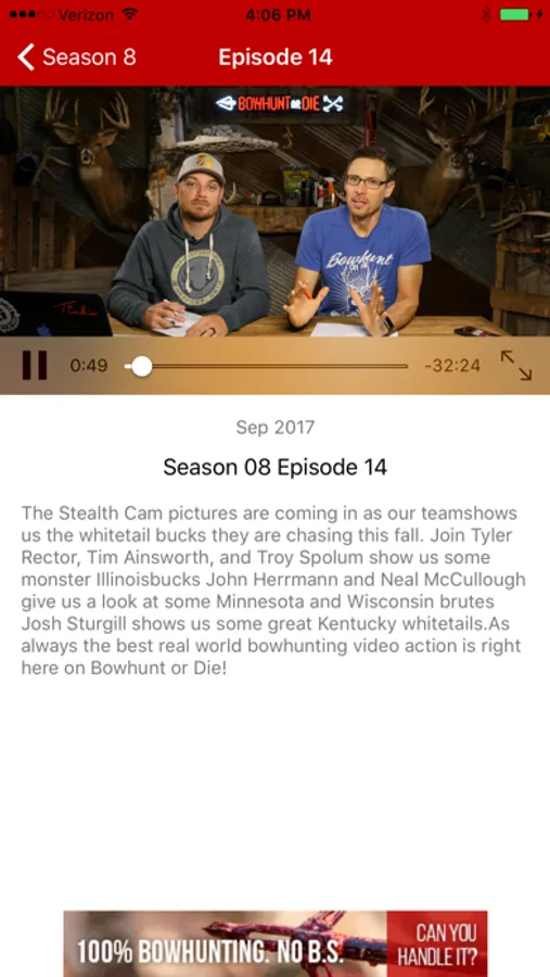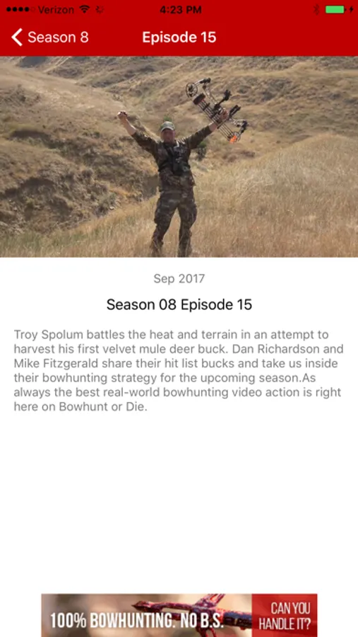 The best way to watch your favorite bowhunting show! Bowhunt or Die® is the #1 bowhunting-only show made by serious bowhunters. Join our team on their bowhunting journey throughout their season. We bring you the highest quality bow hunts from around the U.S. 100% fair-chase bowhunting at it's best. New episodes every Friday from September through January.