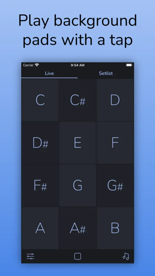 - Perform with ease. AutoPad has two modes: Live mode gives you instant access to all twelve keys, and setlist mode lets you build a custom list of songs.