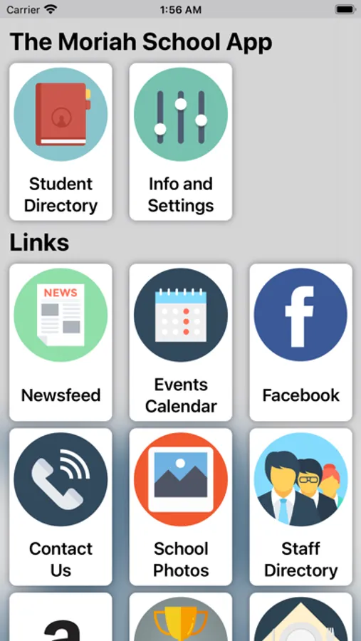 The Moriah School App provides you with easy access links to all you could need, plus a built in, powerful, password protected student directory.