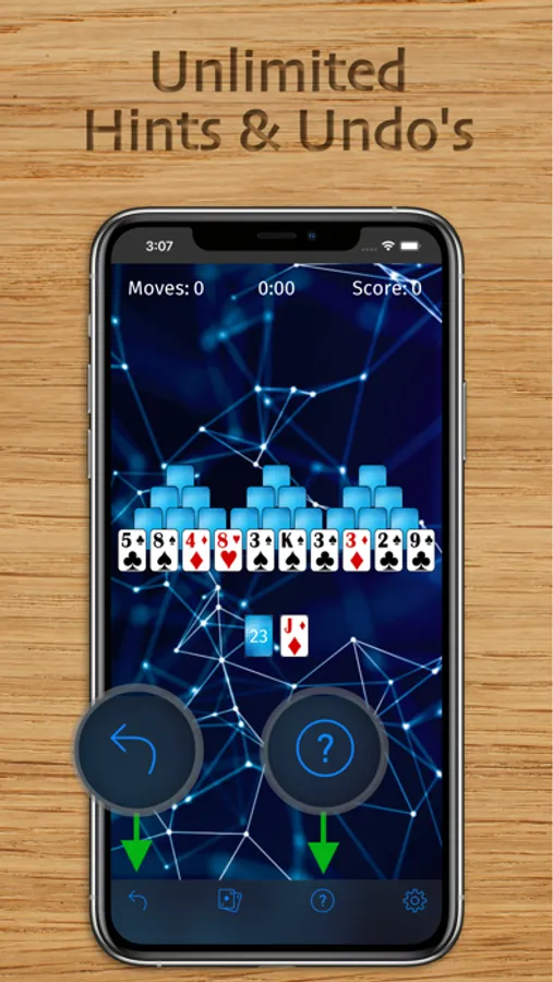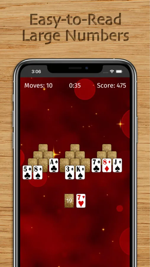 This is a classic TriPeaks Solitaire card game featuring big cards that are easy on your eyes! Relax and play a TriPeaks Solitaire game with 1 finger using drag-and-drop or single tap gameplay. You have unlimited hints and undo's if you get stuck. All for FREE!
