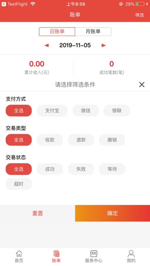 【账单实时查询】实时查询交易订单状态,分析收款情况,每日营收一目了然,随时随地掌控自已的经营状况。