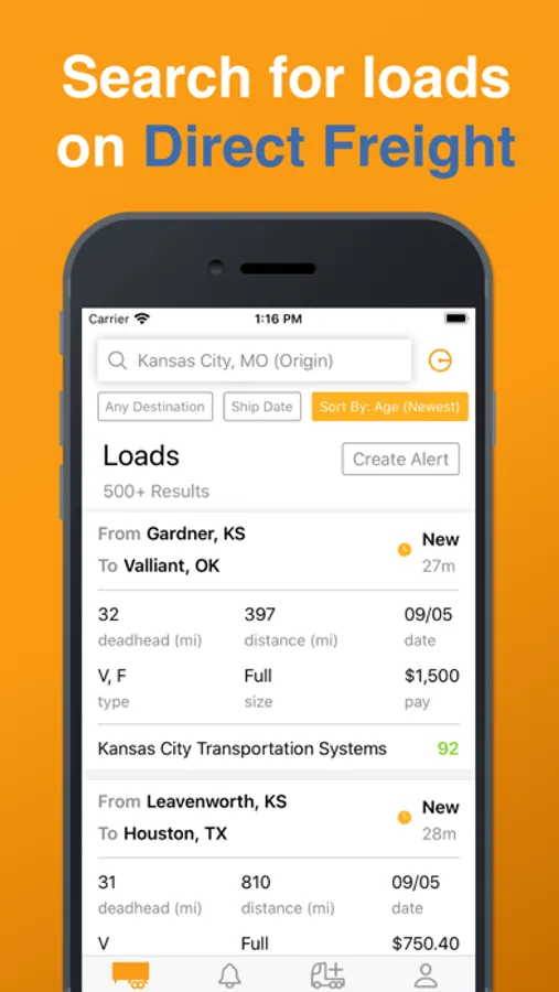 The Direct Freight app lets truck drivers search more than 300K loads daily from reputable brokers & shippers on the Direct Freight network. Users sign in with a current Direct Freight Services username and password to start searching for loads. Enjoy unlimited searches with the Direct Freight Driver app.