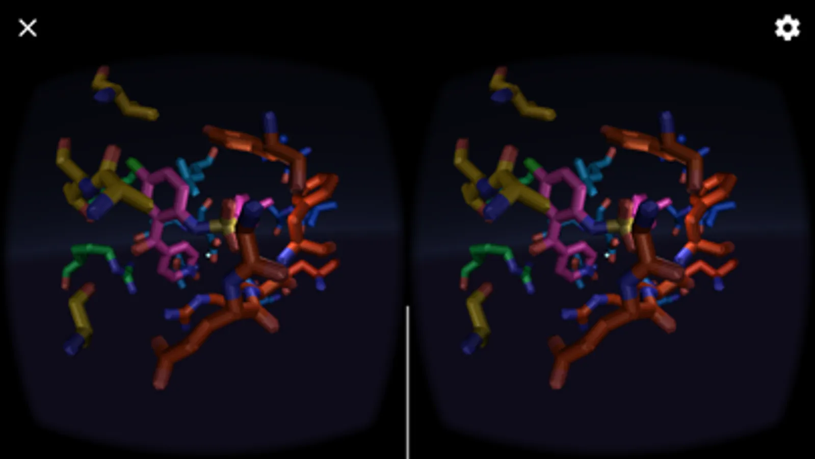 MoleculE 2 VR is a Virtual Reality app for phones requiring gyroscope and a VR headset like Google Cardboard. For a better experience use headphones and play standing or seated on a swivel chair to enjoy a 360 degree experience.