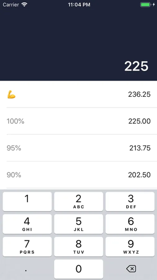 1RM is a simple weightlifting utility, which calculates the percentage breakdown of the total weight entered in nineteen increments, from 95% down to 5%. Next time you workout, you only have to calculate your 1RM breakdown once!