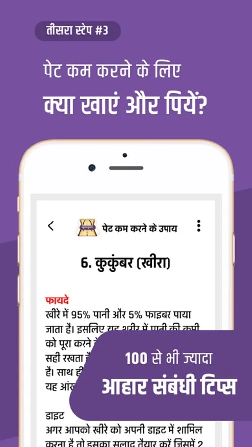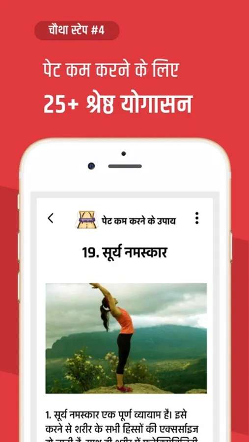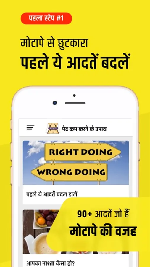 इस एप में मोटापे के कारण, मोटापे के बारे में गलत धारणा, 90+ आदतें जो आपको बदलनी चाहिए, आपका नाश्ता कैसा हो, 100+ सरल घरेलु नुस्खे, 25+ मोटापे हटाने के श्रेष्ठ योगासन व एक्सरसाइज का विवरण चित्रात्मक व सरल भाषा में किया गया है।