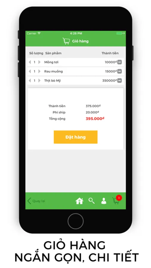 Bạn chỉ cần đặt hàng Online trên ứng dụng và chúng tôi sẽ chuyển hàng đến cho bạn với chất lượng tốt nhất, tại thời điểm bạn cần. Tiêu chí của chúng tôi là an toàn, chất lượng, tiện dụng và sự hài lòng của khách hàng. Bạn có thể đặt các sản phẩm không chỉ của Fresh ship mà còn từ các nhà cung cấp thực phẩm có tên tuổi khác trên thị trường.