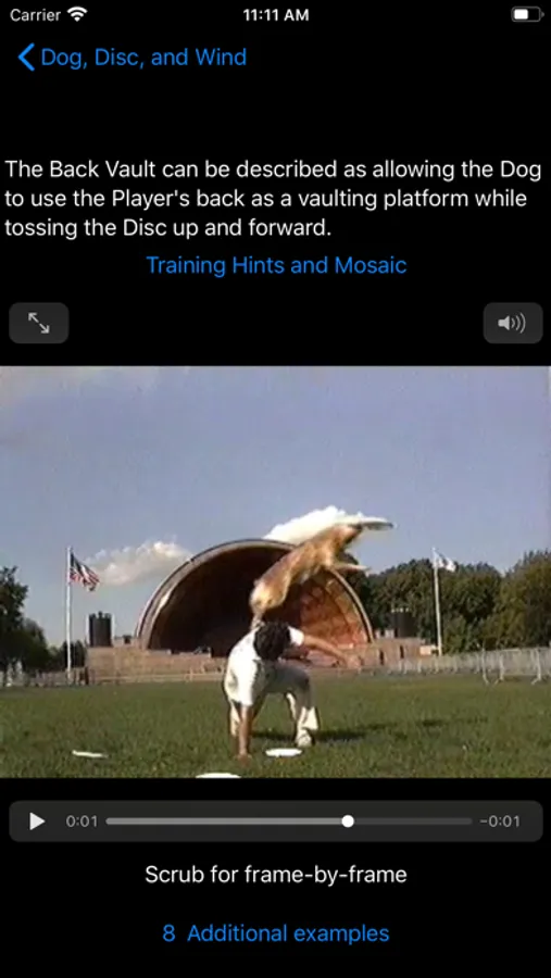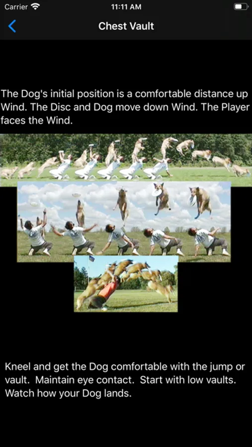 Dog, Disc, and Wind is an entry and intermediate level training aid for the sport of Canine Frisbee. It catalogs a score of Freeflight moves and variations, describes attributes, presents training tips, and demonstrates each move using movies. Interactive browsing includes the ability to scrub forward and back. Mosaics are used to show key concepts at a glance.