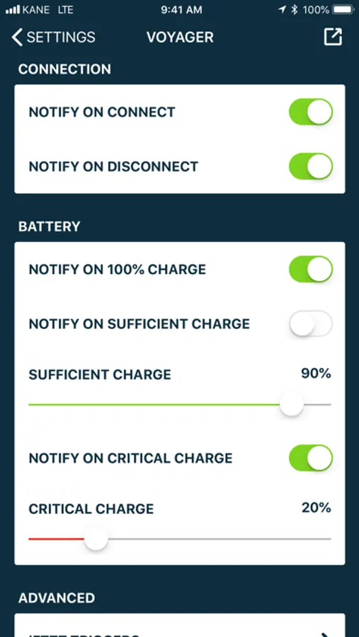 - Smart, configurable notifications for critical battery levels and when your vehicle is "sufficiently charged".