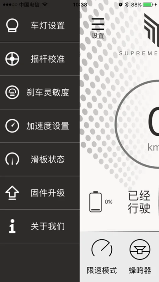 1.可通过蓝牙连接平衡车、电动漂移车、电动滑板车进行电量实时监测显示、剩余里程数、时速显示、水平校准、一键锁车等,以及尾灯多种颜色调整。