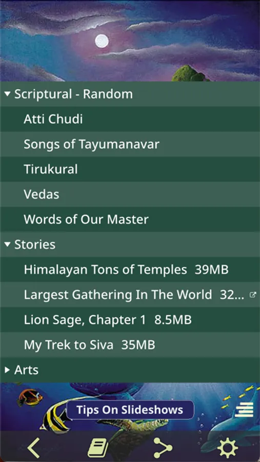SivaSiva offers inspirational quotes to uplift your day, awesome photos and art, access to an extensive audio library, YouTube videos and more. Listen to Satguru Bodhinatha Veylanswami. When he provides upadesha here in the temple, within one week, the whole world can listen! And you can listen to chanting, bhajans and more. SivaSiva has tools for practice and study. Use the app to learn the basics of Saivite Hinduism by diving into the Path to Siva book, which is resident in the app even if you are offline. Read the daily Master Course lessons and practice Color Meditation. The entire current issue of Hinduism Today magazine is available inside the app. Quotes from books give you instant access to their source. A journal tracks your history. Tap favorites to come back to them tomorrow. Have fun with the word-puzzle and learn key concepts at the same time. SivaSiva is a tool for all those who seek daily spiritual upliftment. There Hindu Dictionary for you to explore. You also now you can download the Panchagam (Hindu Calender) for your area.