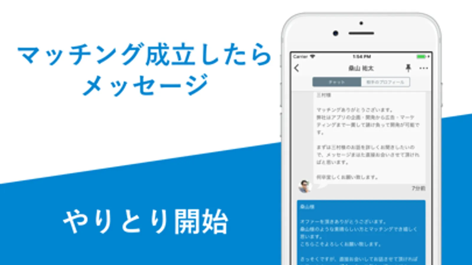あなたに興味を持った経営者からマッチング希望が届き、あなたはマッチング希望を「マッチング」するか「見送る」かを選択するだけ。
