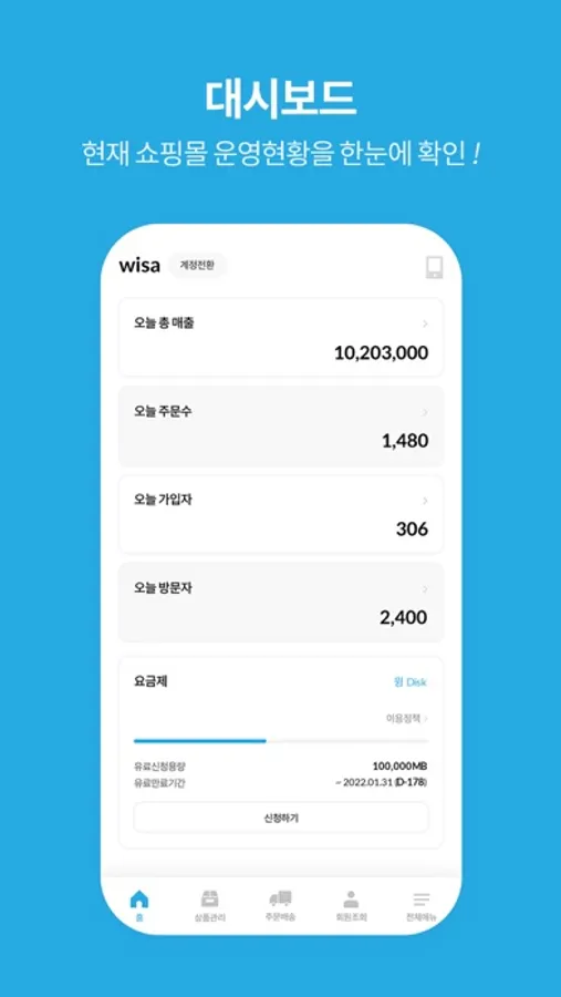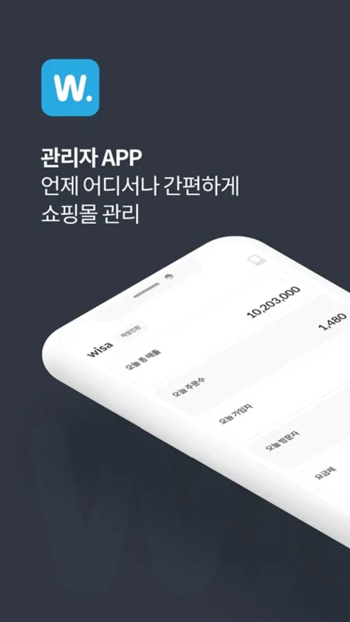 위사 스마트윙 쇼핑몰 관리를 모바일에서 쉽고 빠르게 사용하실 수 있습니다.