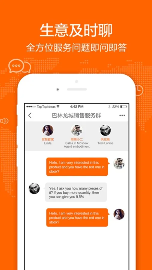 通过聊天工具与客户在线实时沟通,快速达成交易。