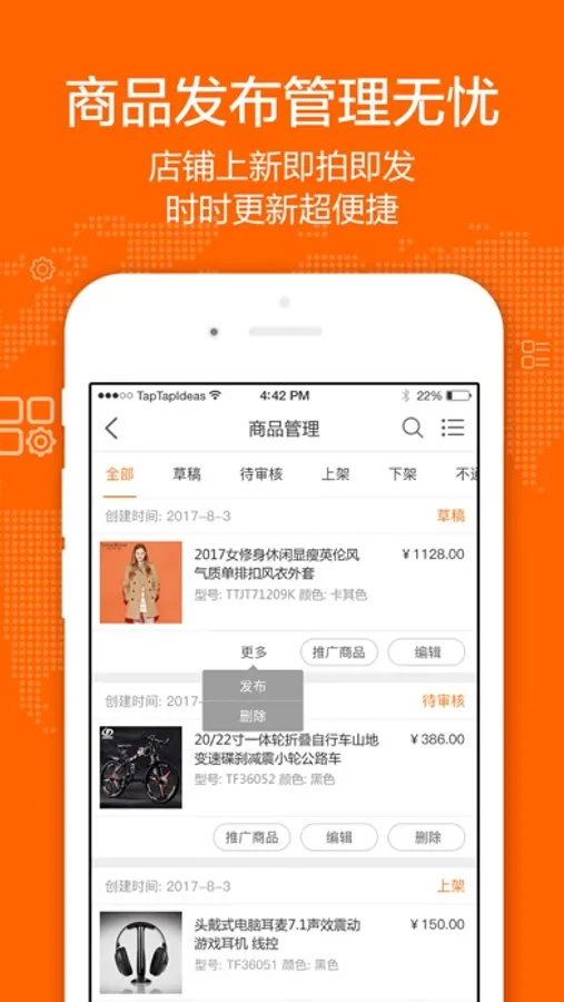 发布和编辑产品信息,适时更新店铺产品,吸引更多买家到店。
