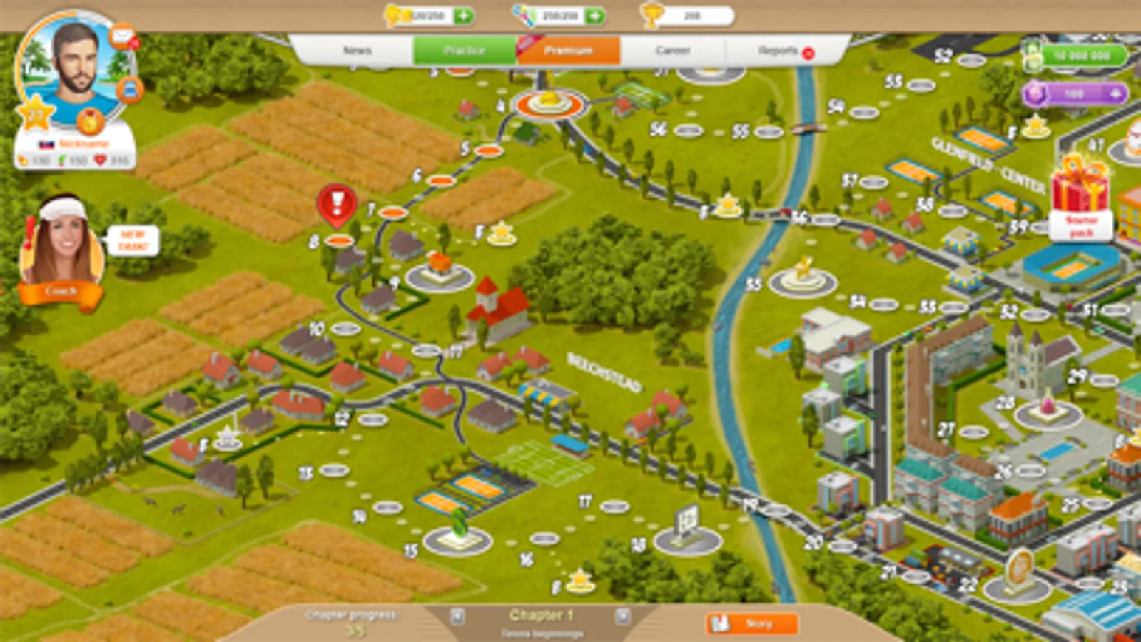 Experience the thrills of a professional tennis career in the sport manager and simulation game Tennis Mania Mobile. Play against challenging opponents who will not only test your reflexes, but also your strategic thinking! Trick them with a sneaky drop shot! Intimidate them by charging to the net and playing up close and personal! Stun them with an ace, fast as a speeding bullet! The choices are yours to make!