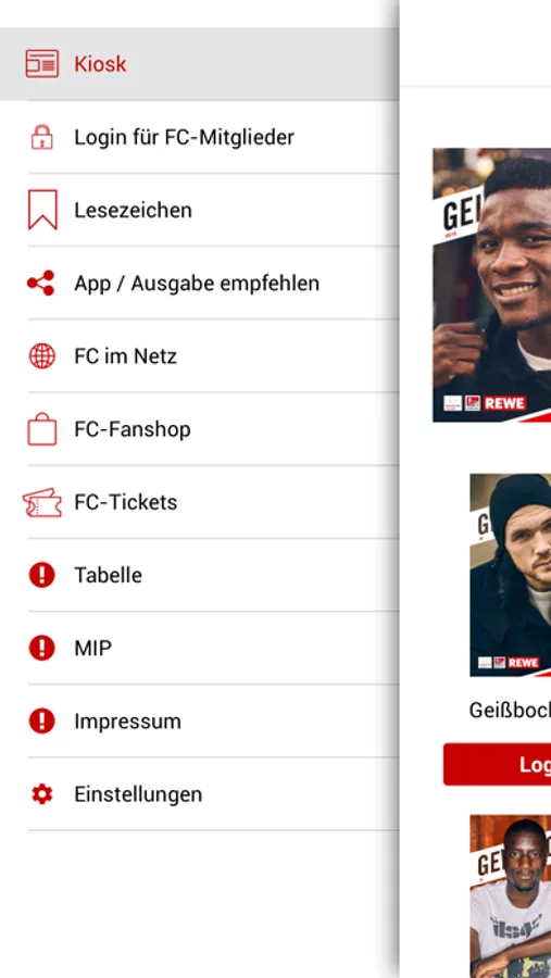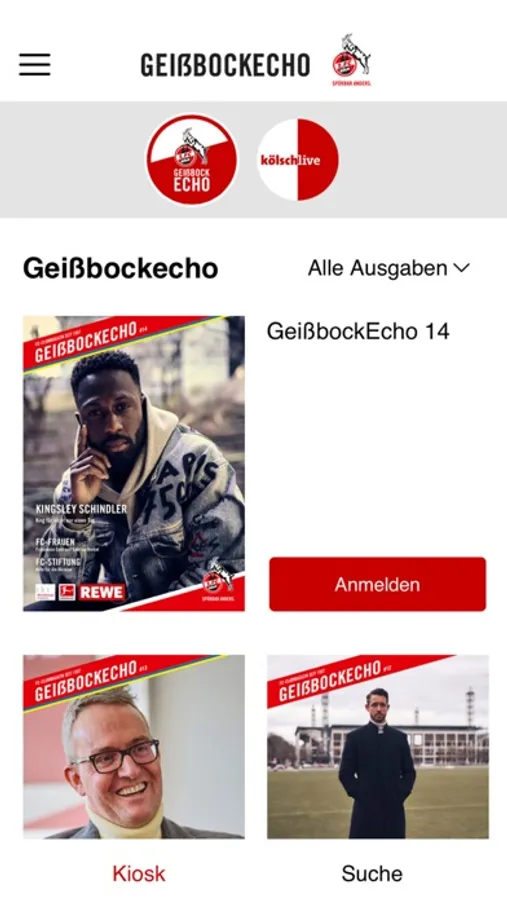 Um zum Download der jeweils aktuellsten Ausgaben des GeißbockEcho berechtigt zu sein, müssen Sie Mitglied beim 1. Fußball-Club Köln 01/07 e. V. sein. Die Login-Daten zum Mitgliederbereich der FC-Website bzw. FC-App finden hier ebenfalls Anwendung.