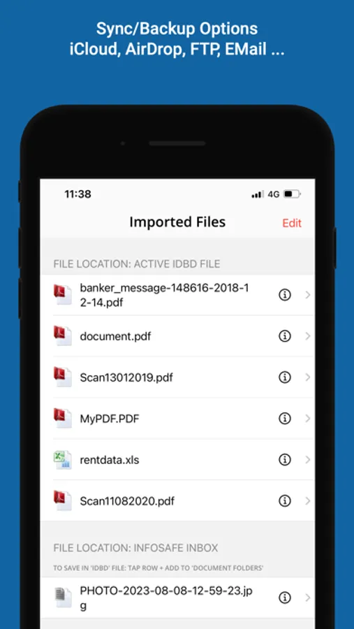 2. Backup is not done automatically, the user is responsible for such a backup (IDBD file) using features (iCloud, email, FTP ...) exists in InfoSafe to avoid loss of data when device is lost , damaged or any other reason, furthermore InfoSafe is NOT providing any direct cloud service, password retrieval, or backup service for security reason (all data stored on your device only!), user need to decide where to do the backup (iCloud, user's private dropbox account, user's diskonkey using FTP, or user's email ...), the user is also responsible for this backup safety.