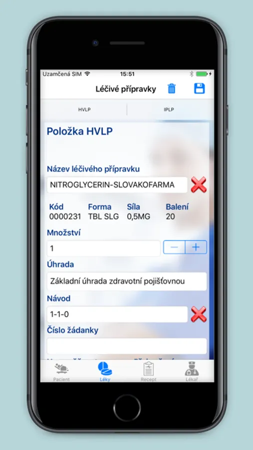 V mobilní aplikaci lze zakládat eRecepty s HVLP (hromadně vyráběné léčivé přípravky) nebo IPLP (individuálně připravované léčivé přípravky).