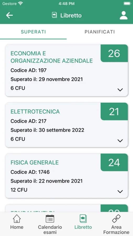 - Consultare il Piano carriera degli studi
