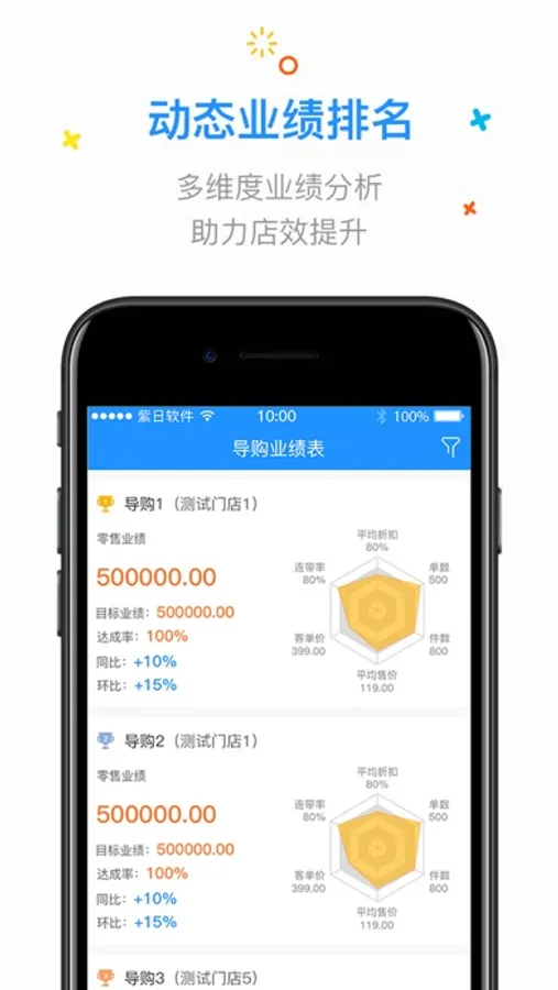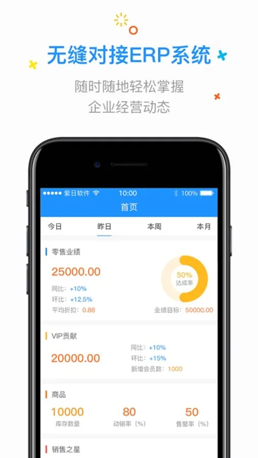紫日驾驶舱为决策管理层提供监控所有终端客户的综合动态情况。如销售、库存、会员、单据流等,便于及时发现问题和处理。系统可利用图表、网格等方式显示多家门店的数据对比,且可自定义显示数据的类型和种类。