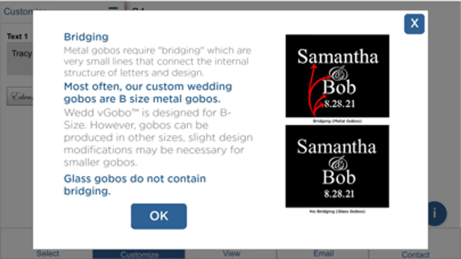 Apollo’s Wedd vGobo™ App is specifically designed to help you design and create gobos for weddings!