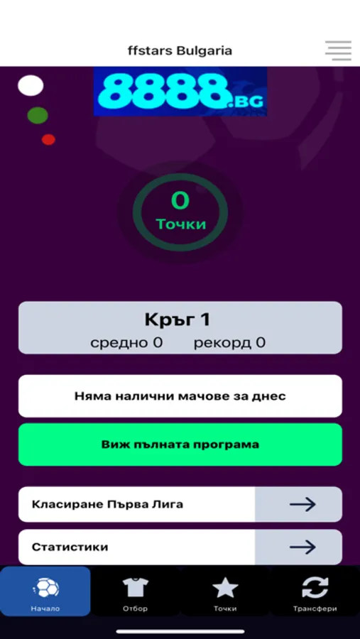 FFStarsBG е фентъзи футбол игра за българското първенство Първа Лига. Резултаите ти в играта се определят от реалното представяне на избраните от теб футболисти в мачовете от първенството.
