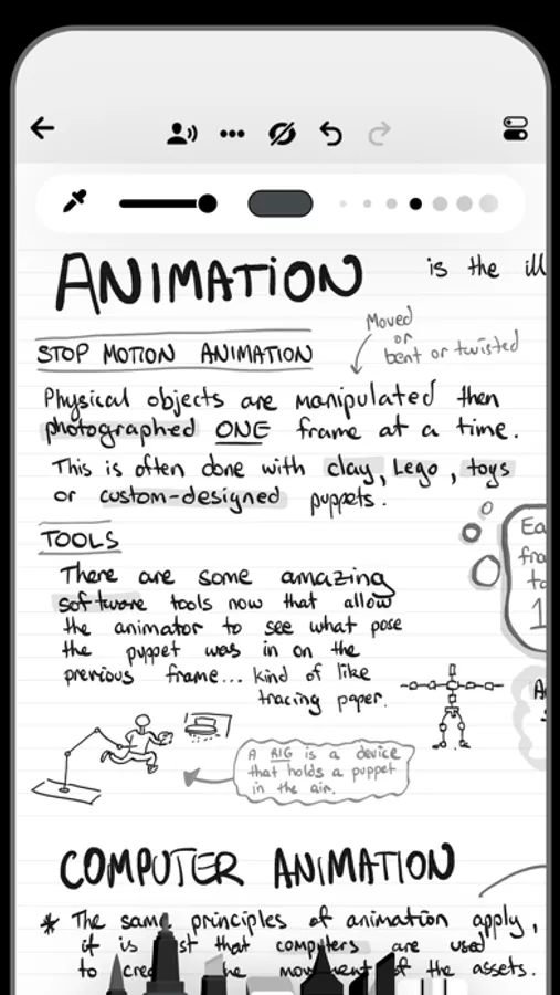 - Infinite width documents, just swipe and keep writing and drawing